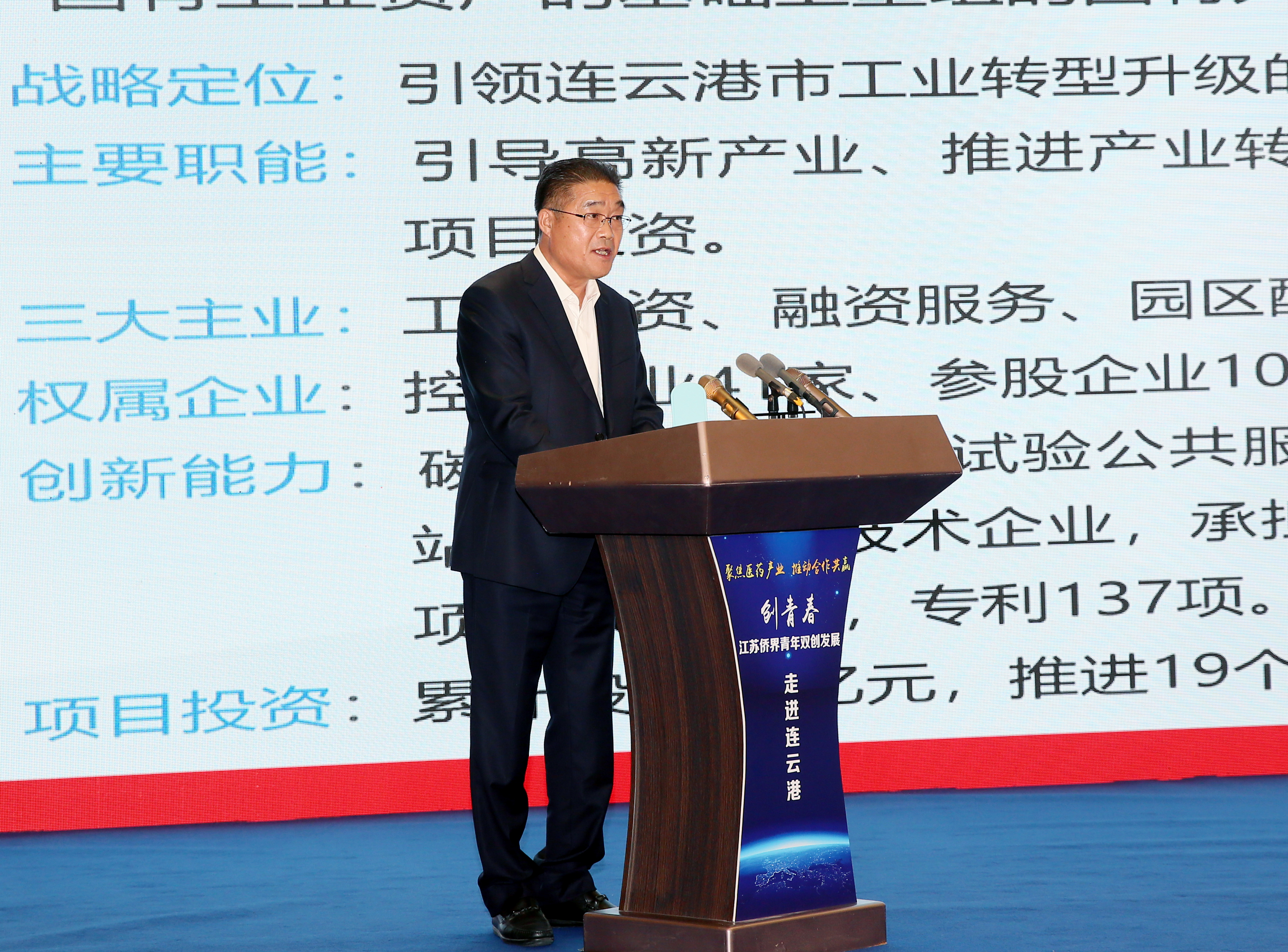 為深化醫藥技術交流合作,推動海內外僑界資源與集團國際醫藥創新產業園需求有效對接,112日至3日,由江蘇省僑聯指導,省僑青會、市僑聯、市工業投資集團聯合主辦的“創青春——江蘇僑界青年雙創發展·走進連云港”交流實踐活動成功舉行。連云港市委副書記、統戰部部長、市政協黨組副書記胡建軍,省僑聯二級巡視員李發勇出席活動,并分別致辭。集團公司黨委書記、董事長丁銳,副總經理劉承志,總經濟師陳如軍和來自全省的近50名僑青和僑商代表參加活動。