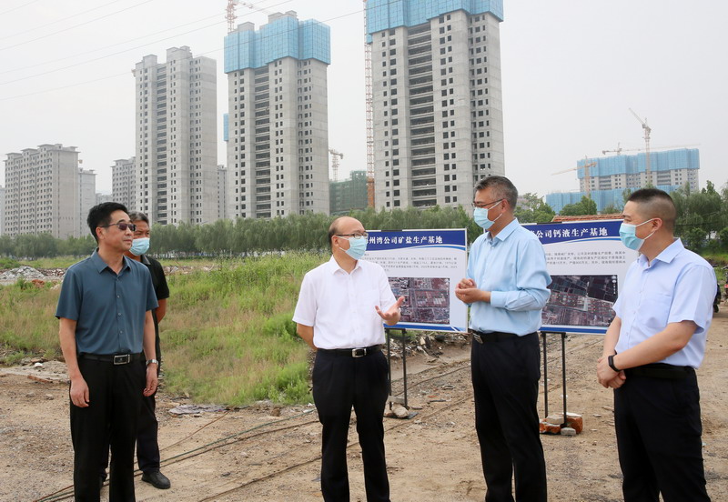 丁銳一行先后到海州灣公司礦鹵復(fù)產(chǎn)、翔立市政工程、海州灣工業(yè)園、鈣液生產(chǎn)區(qū)域和美多利科技創(chuàng)業(yè)園等現(xiàn)場,詳細(xì)了解鹽業(yè)生產(chǎn)、項(xiàng)目建設(shè)、土地開發(fā)、安全管理等情況,并為奮戰(zhàn)在一線的員工送去防暑降溫物品。