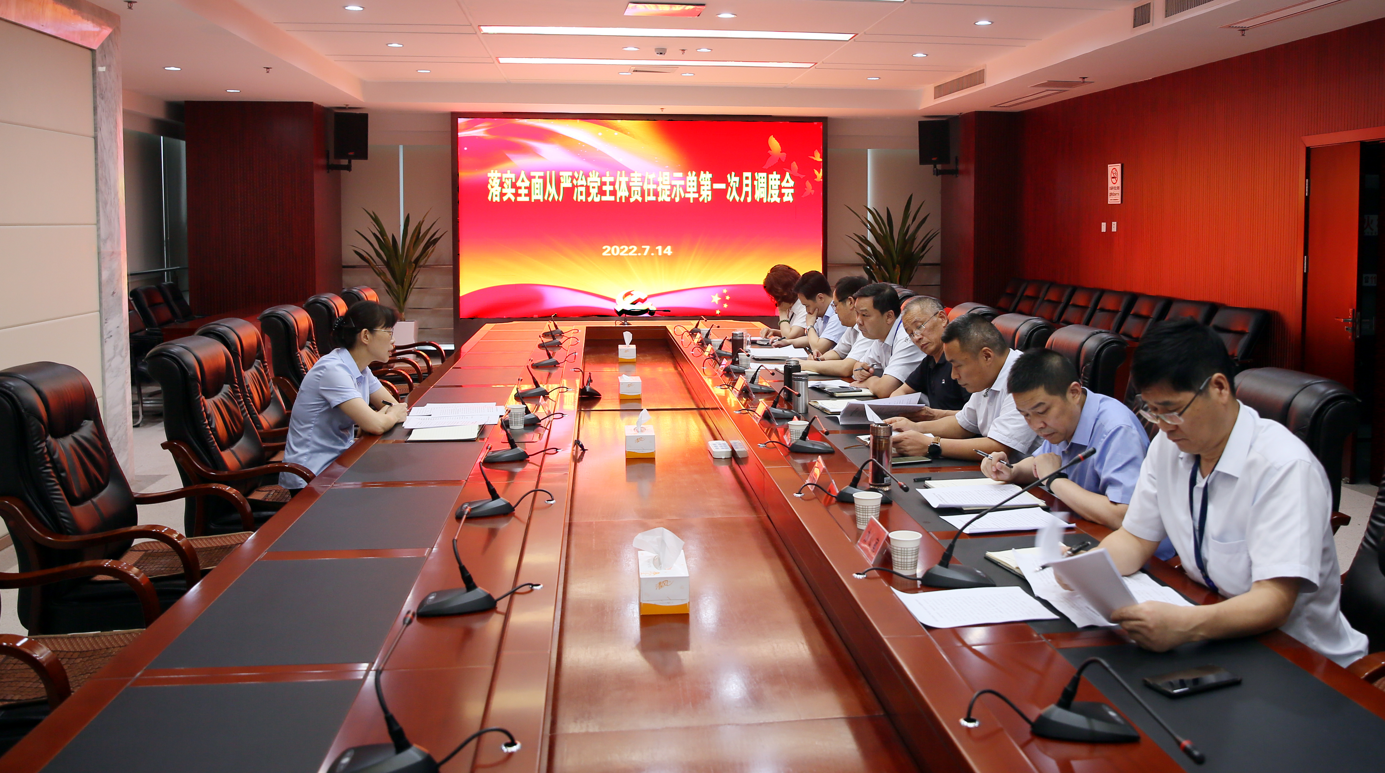 7月14日上午,集團公司召開落實全面從嚴治黨主體責任提示單第一次月調度會。集團公司紀委書記汪群主持會議并講話。