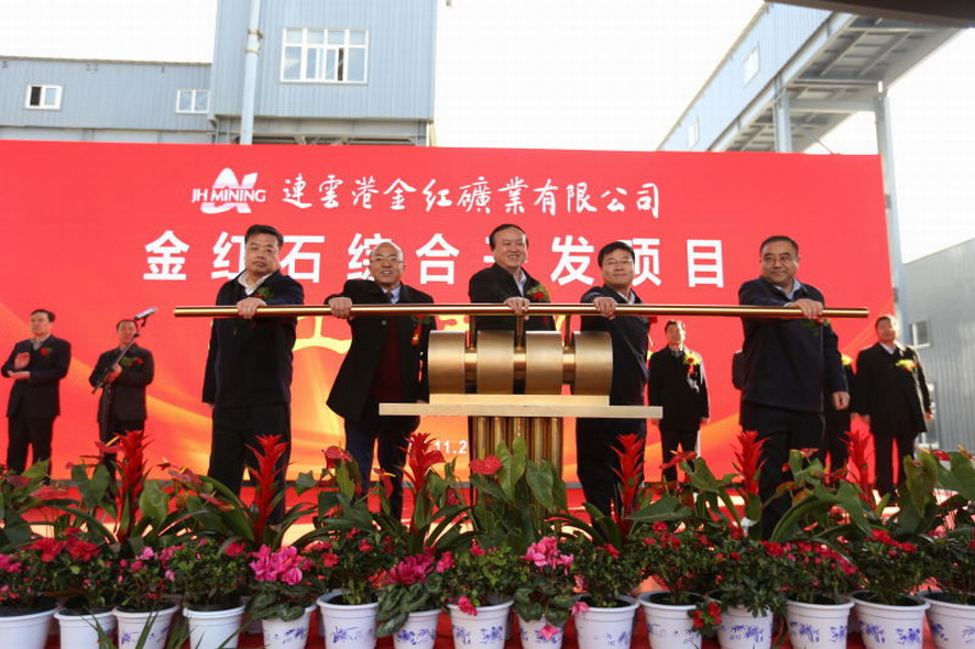 11月26日上午,集團公司又一參股企業——連云港金紅礦業有限公司金紅石綜合開發項目竣工投產儀式,在金紅礦業選礦廠隆重舉行。連云港市副市長徐家保,東海縣有關領導同志,集團公司董事長、黨委書記楊龍、副總經理楊國新、王士華,出席了竣工投產儀式。
