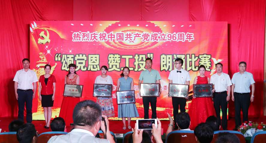 為慶祝中國共產黨成立96周年,緬懷黨的豐功偉績,6月29日下午,集團公司黨委在連云港職業技術學院文化藝術中心舉辦“頌黨恩·贊工投”朗誦比賽,集團公司領導楊龍、胡建明、張其海、王士華、戴鴻鳴、汪群、匡友本、陳如軍與來自集團公司各條戰線的近三百名代表歡聚一堂,共同慶祝黨的96歲華誕。