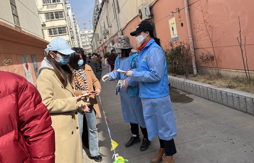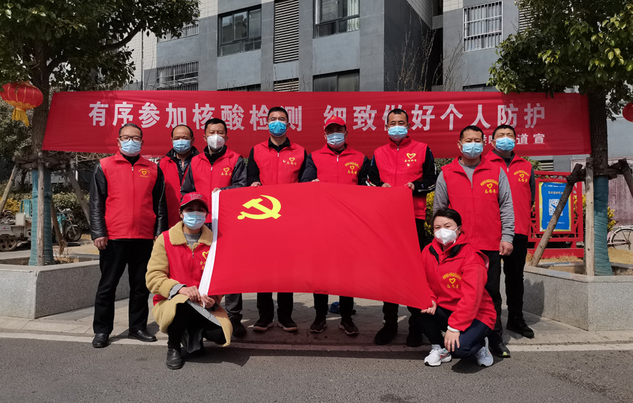 除了在崗員工,還有退休黨員秦英、孫芳等,在疫情發生前,他們是公司內退黨員,在疫情爆發以后,他們是無所畏懼的抗疫戰士。隨著連云港開始第一輪全員核酸檢測,工作人員和志愿者都嚴重短缺,每天確診病例激增的數據都令人觸目驚心。當看到招募志愿者的公告時,秦英熱血沸騰。“黨和人民需要我,我的家鄉需要我!”主動聯系海州區幸福路街道西大嶺社區,在咨詢志愿者報名的同時,鄭重地并向社區遞交了一份疫情防控“請戰書”。