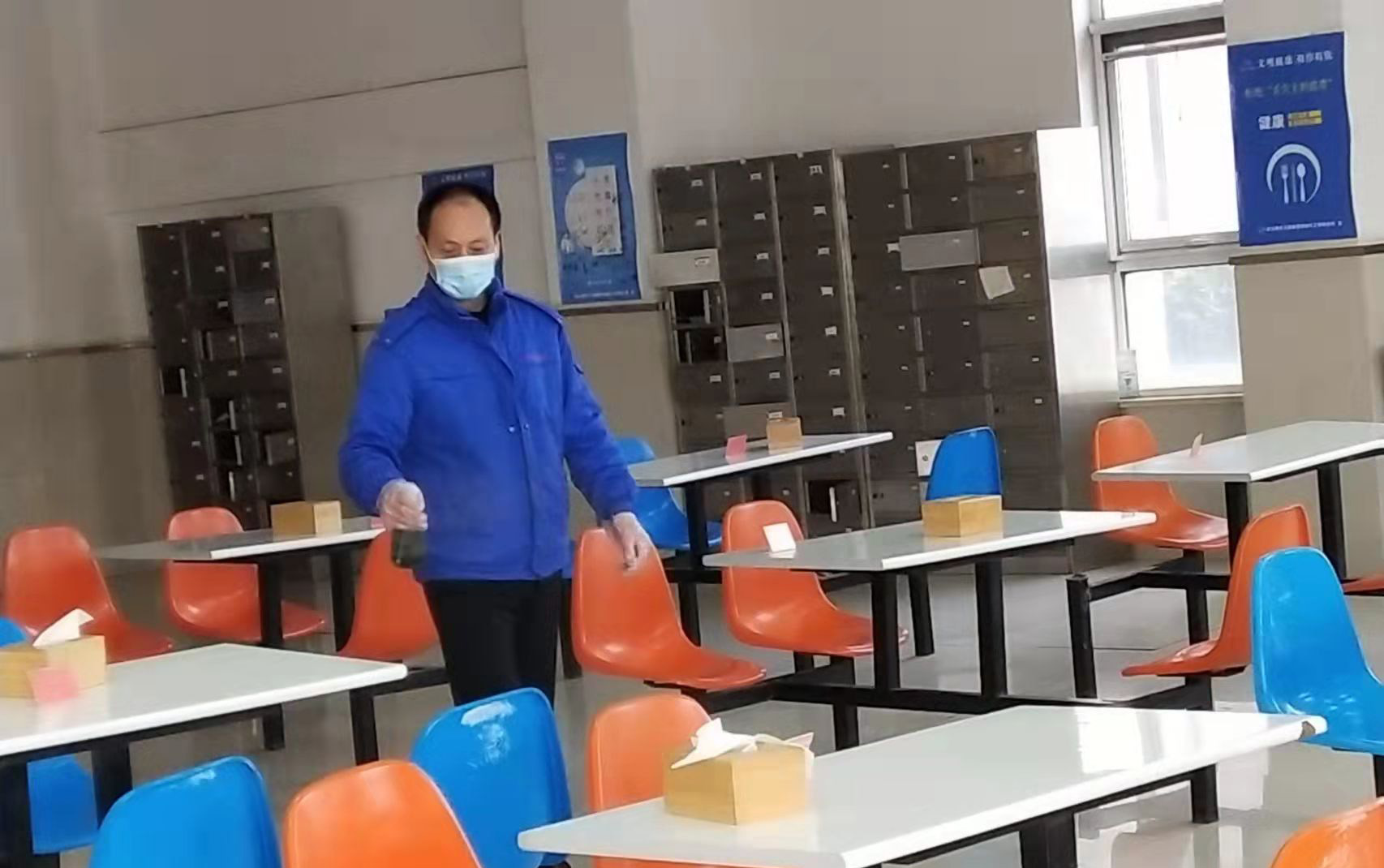 疫情期間,為了讓留崗員工吃上放心餐,后勤司務(wù)長王樹偉帶領(lǐng)餐廳員工安家在餐廳,時(shí)刻照應(yīng)著餐廳的大小事務(wù)。為了確保所購菜蔬新鮮,他堅(jiān)持頭前一天晚上就和供應(yīng)商聯(lián)系食材。但是在這個(gè)非常時(shí)期,有時(shí)候明明訂好的食材卻臨時(shí)又缺貨,于是他就一個(gè)電話接一個(gè)電話的再找人聯(lián)系購買,確保讓大家吃上新鮮安全的食材。每天,王樹偉都會親自安排每餐的飯菜,到廚房檢查食材制作情況,提高一線員工的伙食質(zhì)量。從采購到搬運(yùn),一遍遍、一次次地不辭辛苦,累得渾身是汗也顧不得休息,只想盡快把工作落實(shí)到位。他說,兵馬未動糧草先行,我們要保障好一線員工的伙食,讓他們吃得飽才能打好這場硬仗。此外,他還每天上報(bào)部門員工的健康動態(tài)情況,做好體溫測量和餐廳環(huán)境消毒工作。
