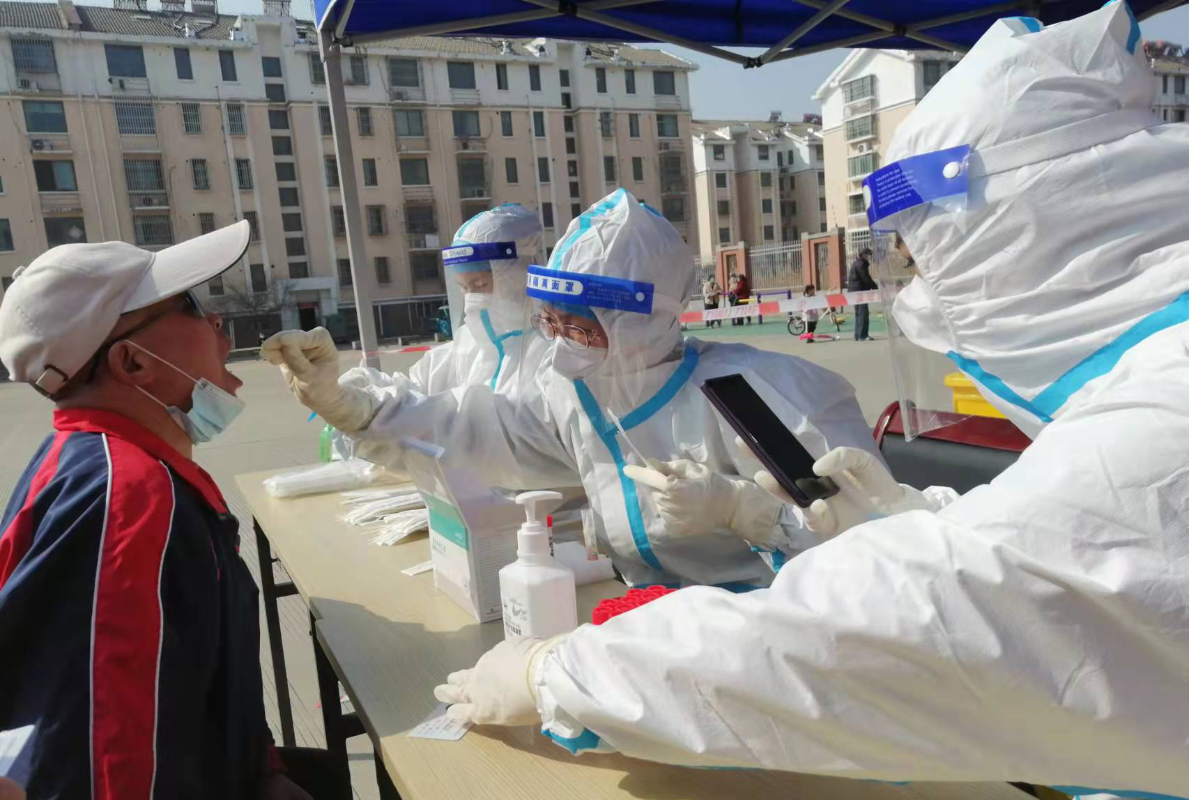“現在我們是封控區,不能出去給政府添亂,閑也是閑著,所以社區一招手我們就來了”這是臺北女工委副主任宋文靜的一席話。這波疫情來的突然,緊急核酸檢測緊缺志愿者服務。在公司”戰疫情、爭貢獻“主題實踐活動感召下,她已經在小區擔綱核酸檢測志愿者有兩個夜晚了。而這一幕決不只在海州主城區,在開發區昌圩社區,臺北志愿服務隊已經成為社區防疫主力。疫情伊始,臺北下屬海州灣公司黨支部一班人就已經奮戰在社區防疫一線。黨支部副書記蘇玲、女工胡超,與專業醫護人員一道,穿上厚重防護服,直接站在核酸檢測最前線,這一站就是12小時。值班后稍作休息他們就又聯系總經理霍正鋼、翔立黨支部副書記姜海洋、入黨積極分子朱文健等參與聯防聯控,擔當疫情義務宣傳員。