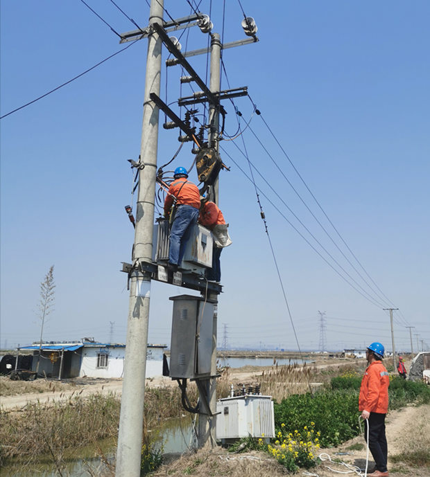 近年來,淡水養(yǎng)殖不斷擴大高密度養(yǎng)殖規(guī)模,充氧設備逐漸增加,夏季高溫臺變用電負荷大增,養(yǎng)殖區(qū)部分變壓器不堪重負。為了保障廣大養(yǎng)殖用戶生產(chǎn)生活用電,確保供電設備經(jīng)得起高溫負荷的“烤”驗。當天上午八點半,在辦理好相關停電手續(xù),停電、驗電、安裝接地線、安全交底等各項準備工作的基礎上,在組長余榮欣的統(tǒng)一指揮下全組人員克服困難開始拆除舊變壓器,吊離變壓器,安裝新變壓器……經(jīng)過近5個小時奮戰(zhàn),順利完成2處變壓器更換安裝工作任務,提前做好迎峰度夏“保衛(wèi)”工作。