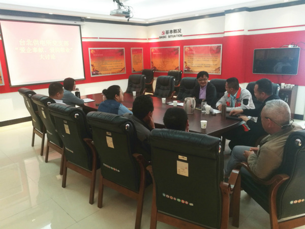 臺北供電所黨支部在5月25日召開“愛企奉獻、愛崗敬業”主題討論會,結合經理助理徐磊、集團勞模于廣兵等優秀黨員親身講解先進事跡,廣泛征求生產經營、改革發展的好辦法、好建議,組織黨員干部直面問題、凝聚共識,為企業健康發展建言獻策。(錢明華)