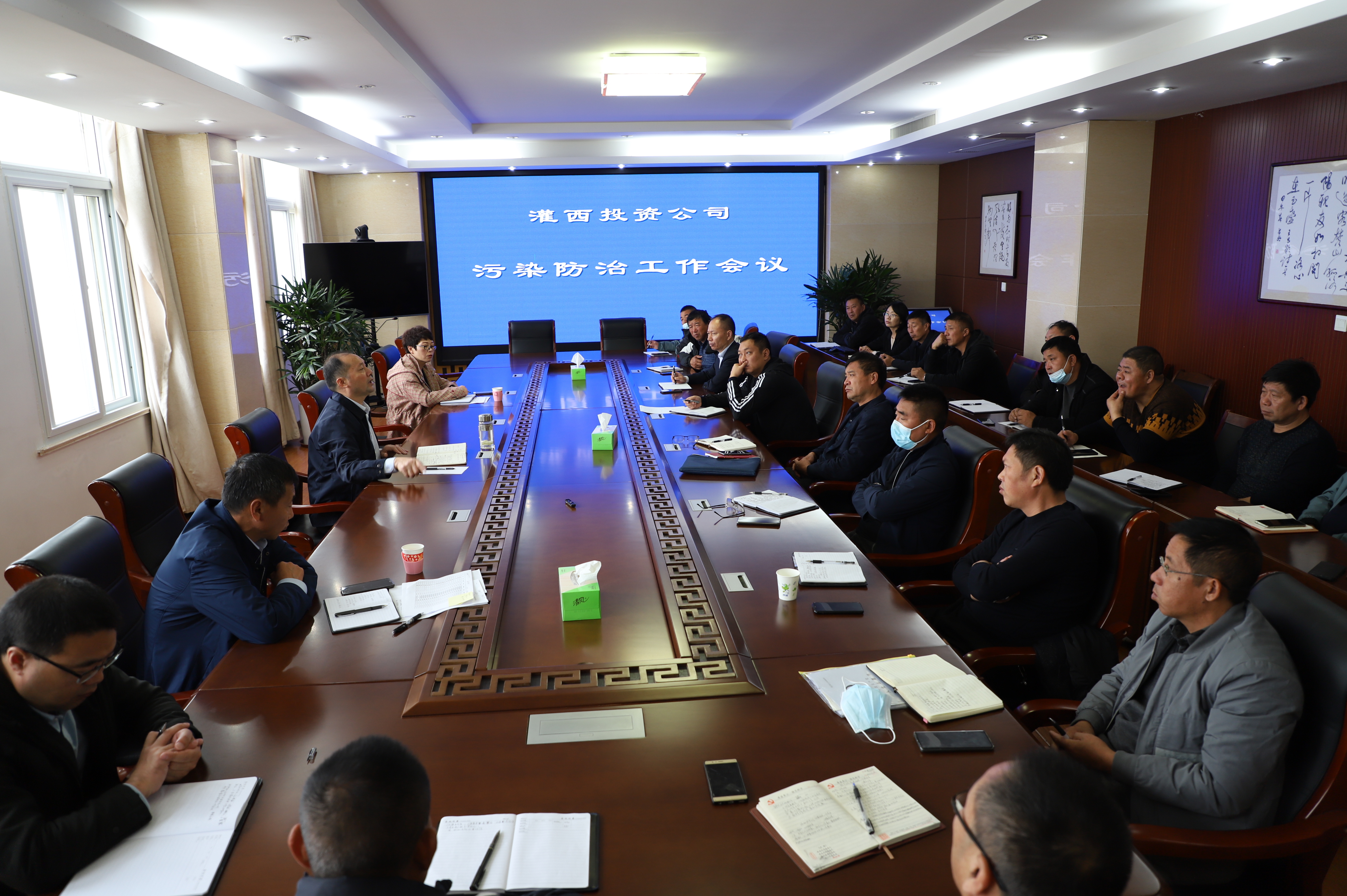 為全面分析當前污染防治工作形勢,加快推進污染防治重點工作,近日,灌西投資公司在三樓會議室召開污染防治工作會議,公司黨委書記、董事長、總經理李國文,黨委副書記、工會主席王宏及各單位部門負責人參加會議。