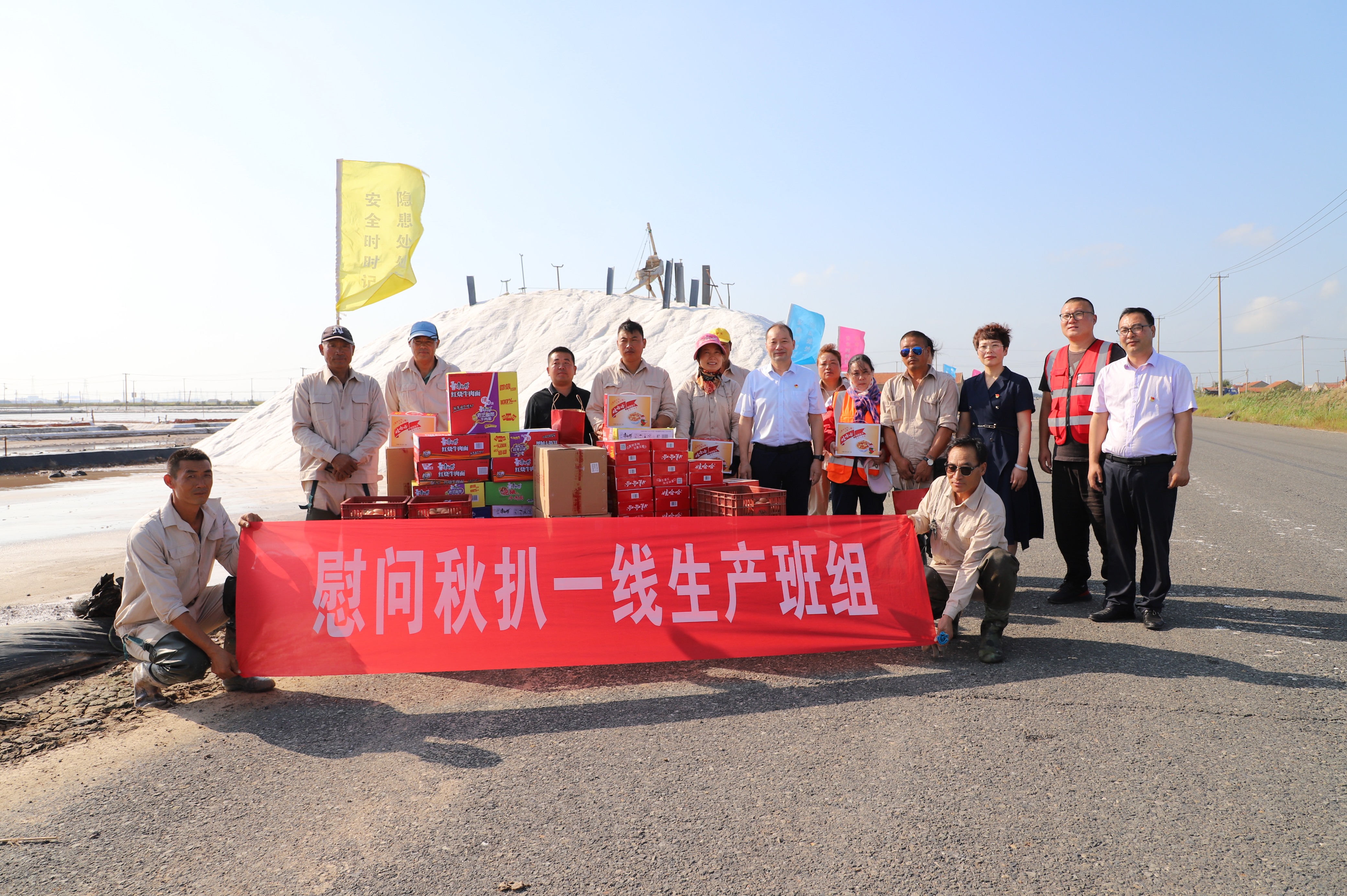 投資公司領(lǐng)導(dǎo)來到新河二班與埒南九班,對(duì)他們的工作表示肯定,要求一線職工在做好工作的同時(shí)一定要注意生產(chǎn)安全,保證職工安全和身體健康。同時(shí)給堅(jiān)守在扒鹽一線的工人送上了誠摯的問候,對(duì)他們的辛勤勞動(dòng)表示感謝,為他們送上了月餅、雞蛋、八寶粥、方便面等物品。