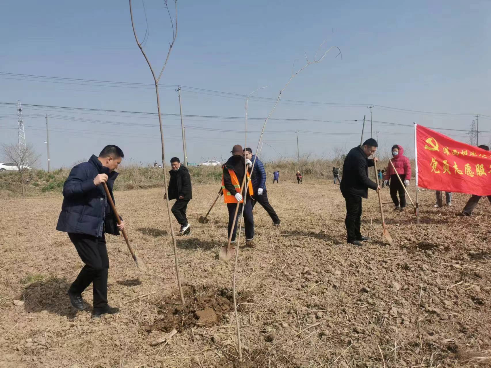 本次活動由公司領導班子帶隊,公司黨員、職工共40余人參加。在植樹現場,大家分工合作,有的挖坑、有的扶苗、有的培土、有的踩實、有的澆水,每個人都全身心投入植樹工作中。通過大家的默契配合與辛勤勞動,一株株新栽種的烏桕樹苗迎風而立,成為一道靚麗的風景線。