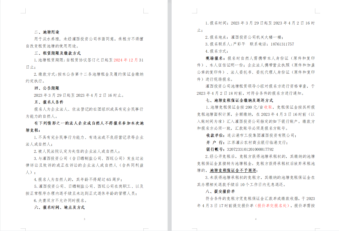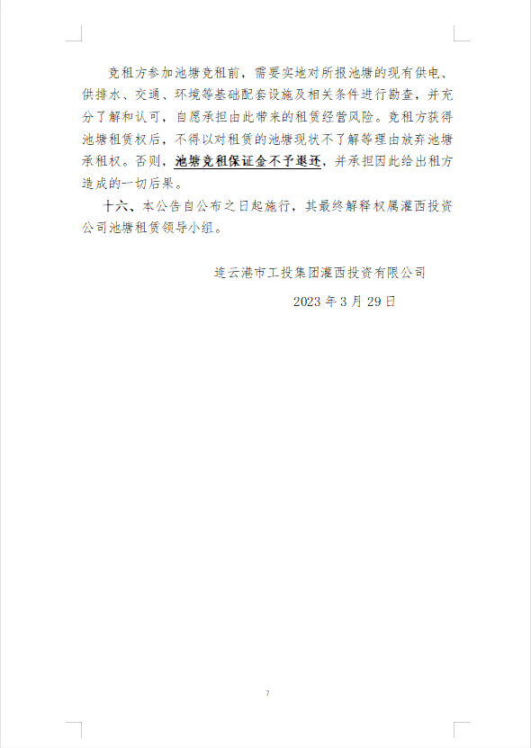 連云港市工投集團灌西投資公司2023年度淡水養殖池塘公開競租第二次公告
