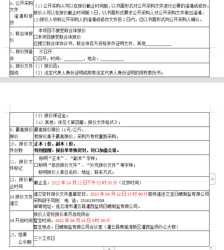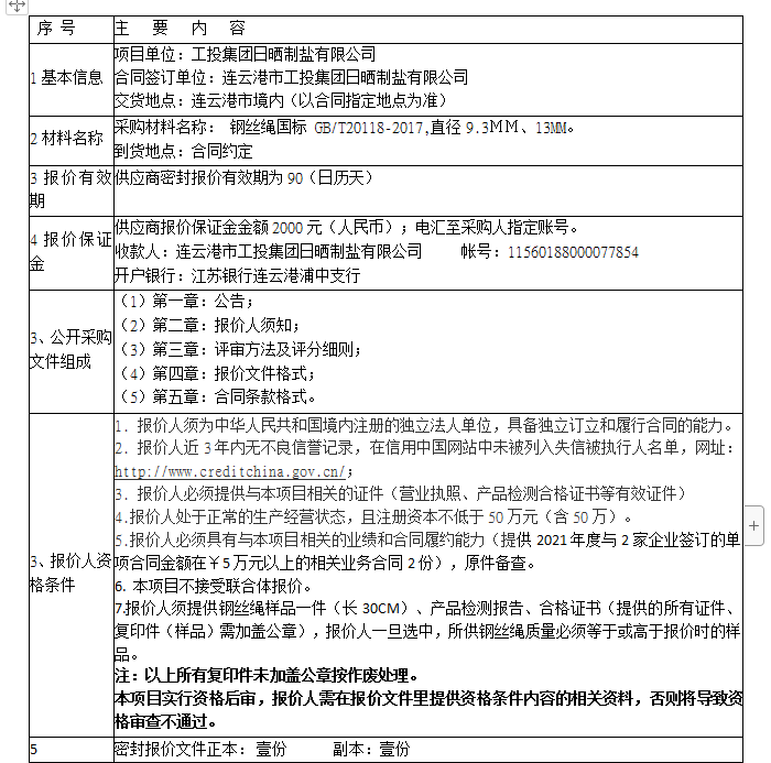 報價保證金接收人:連云港市工投集團(tuán)日曬制鹽有限公司。