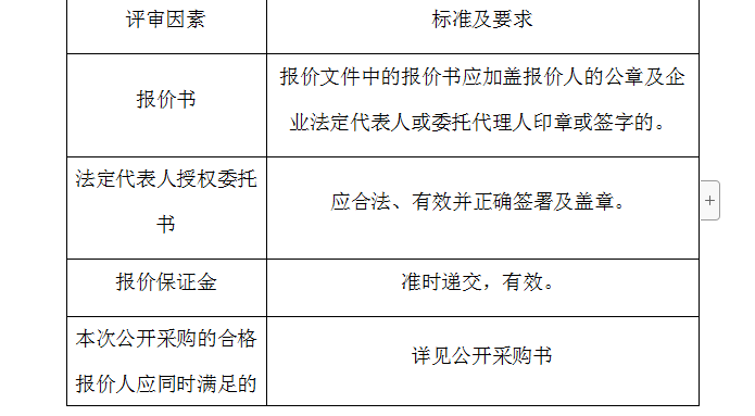 2、評審委員會將根據(jù)以下標(biāo)準(zhǔn)對各報價人進(jìn)行初步評審,有一項不符合要求的,作否決報價處理,不進(jìn)入詳細(xì)評審。