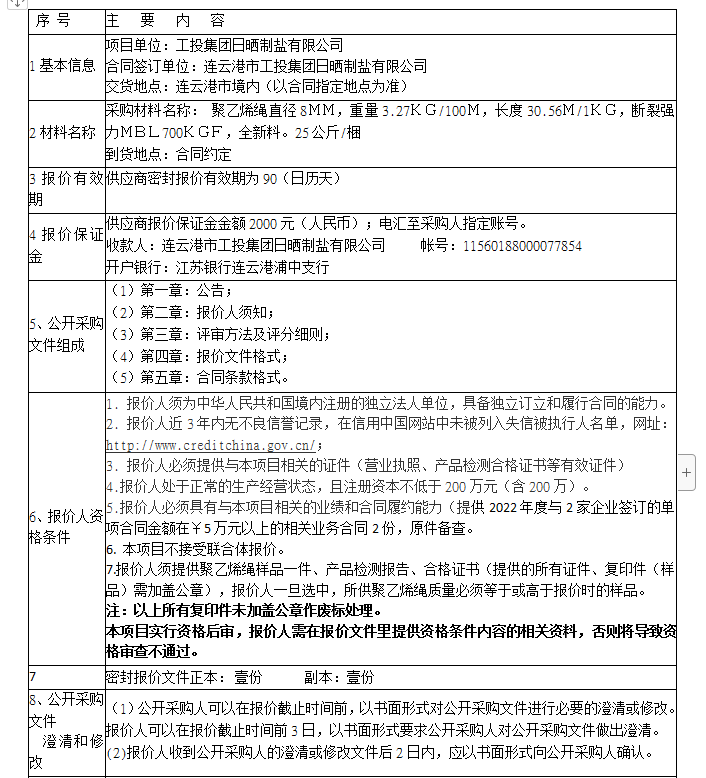 報(bào)價(jià)保證金接收人:連云港市工投集團(tuán)日曬制鹽有限公司。