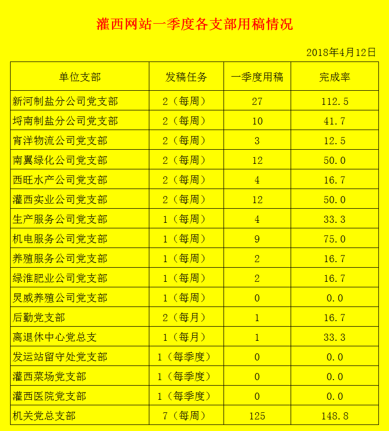 灌西網站一季度各支部用稿情況