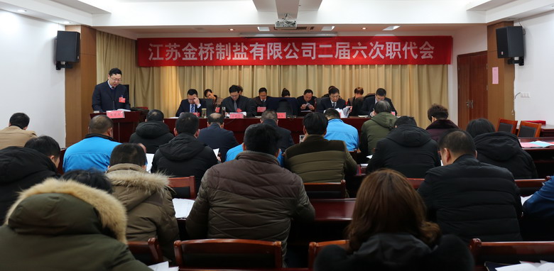 2月15日上午,我公司二屆六次職代會在公司三樓會議室隆重召開,來自各車間、單位、部門的46名職工代表參加了會議,共同商討金橋制鹽發展大計。公司領導班子成員及職工代表出席會議,部分先進代表列席會議。公司董事長、黨委書記、總經理朱桂玉作工作報告。大會由公司黨委副書記、紀委書記、工會主席李昊睿主持。
