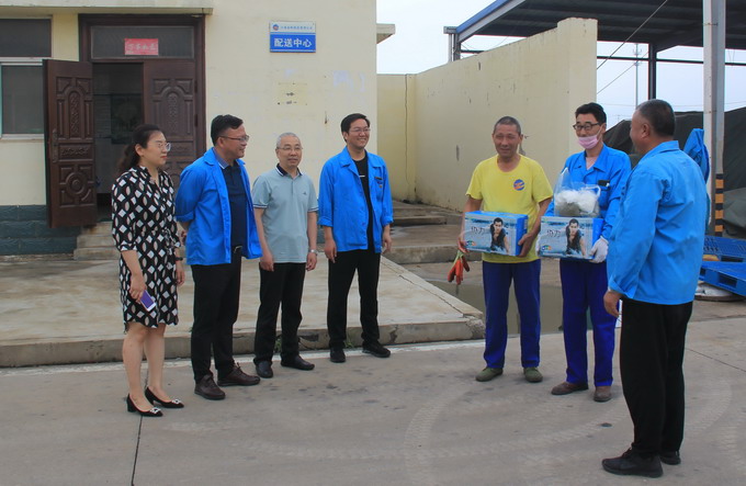6月24日,我公司工會開展夏季“送清涼”活動,黨委副書記、工會主席曹開明、副總經理張學峰和田磊一行,為高溫下的一線職工送去了綠豆、白糖、飲料、茶葉等防暑降溫品。