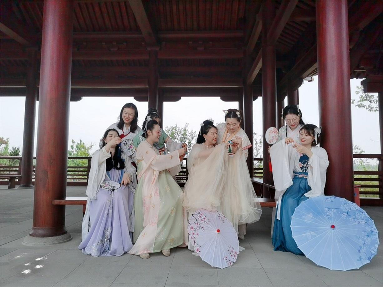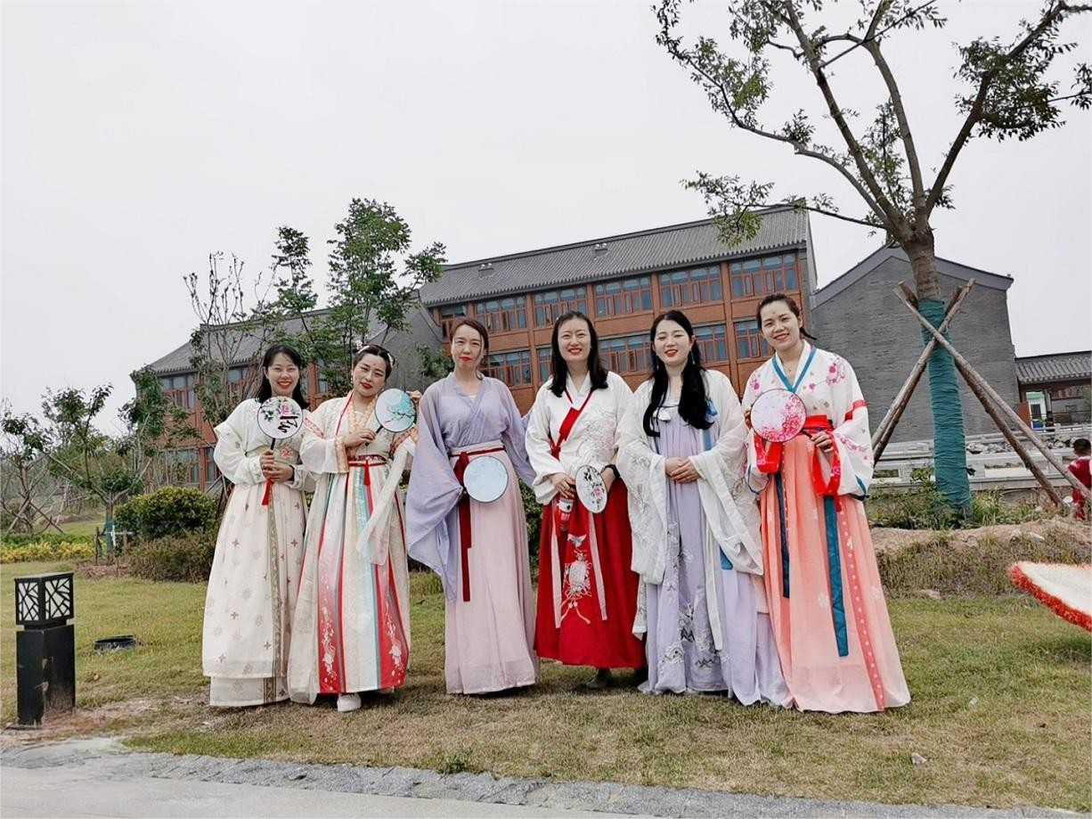 活動現場,來自金融板塊各部門的20余名員工,身著漢、唐、宋、明不同形制華美優雅、端莊秀麗的漢服,攜手起舞,漫步在園博園的各個角落,為這個現代都市帶來了一抹醉人、古樸的文化氣息。著漢服的員工們重溫古代禮儀和儀式,感受中華文化的深厚底蘊。還開展了誦讀經典、繡荷包、刺五毒、趣味吃粽子、“粽”橫四海等豐富多彩的端午主題文化活動,充分展現了員工生動的活力和熱情。在錦鯉游動、荷塘月色、彩蝶翩翩的園內,大家沉浸于濃濃的中華古風之中,用心感受著中華傳統文化的獨特魅力此次活動展現了增強員工的凝聚力和歸屬感,為公司的發展注入了新的活力。
