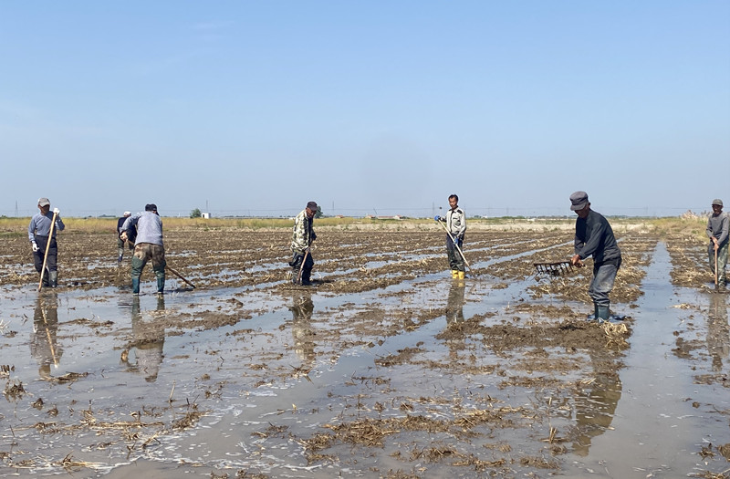 ? ? ? ? 倉(cāng)儲(chǔ)中心的土地復(fù)墾項(xiàng)目施工現(xiàn)場(chǎng)延續(xù)著平日里的繁忙景象,挖掘機(jī)、推土機(jī)等大型機(jī)械在田間往返穿梭,正有條不紊地按照工程節(jié)點(diǎn)加緊施工,中心安排專職人員現(xiàn)場(chǎng)監(jiān)管督促,確保水稻種植不誤農(nóng)時(shí)。(王璐 莫永凱)