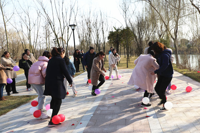 為使大家身心得到最大放松,投入戶外體驗(yàn)清新大自然,在絲路小鎮(zhèn)公園進(jìn)行了“三月女人天 別樣婦女節(jié)”主題戶外活動。游戲“你畫我猜”中,隊(duì)員們有的配合默契一猜既中,也有的用肢體艱難的比劃著,引的大家捧腹大笑。“踩氣球”游戲更是讓現(xiàn)場氣氛達(dá)到沸點(diǎn),每人都放開平日工作中的嚴(yán)謹(jǐn),放松心情在場地上追逐奔跑。大家在游戲中收獲了歡聲笑語及片片感動,同時,通過游戲提高大家的合作意識和進(jìn)取精神,營造濃郁節(jié)日氣氛。