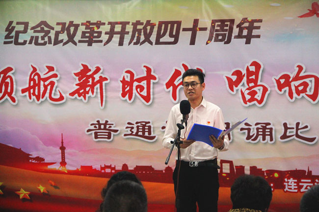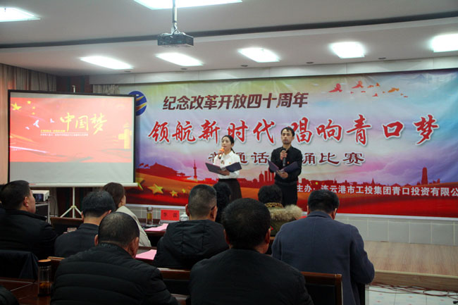 為了紀(jì)念改革開放四十周年,引導(dǎo)和激勵廣大職工圍繞 “高質(zhì)發(fā)展、后發(fā)先至”主題主線,為建設(shè)“強(qiáng)富美高”新青口、開啟青口發(fā)展新征程貢獻(xiàn)力量。12月11日下午,青口公司黨委隆重舉行“領(lǐng)航新時代 唱響青口夢”紀(jì)念改革開放40周年普通話朗誦比賽?;顒友埖竭B云港市語委辦副主任、詩朗誦藝術(shù)家協(xié)會副主席朱衛(wèi)文,國家級普通話測試員、市朗誦藝術(shù)家協(xié)會副秘書長李蕾、主任播音員、市朗誦藝術(shù)家協(xié)會副主席朱平擔(dān)任評委。公司領(lǐng)導(dǎo)班子 及 全體管理人員參加活動