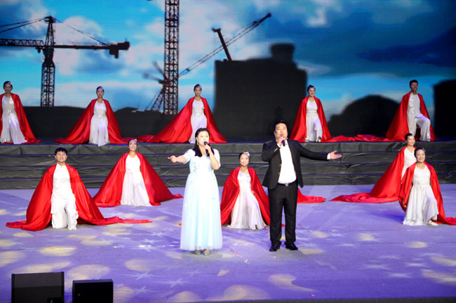 此次文藝匯演在歌舞《不忘初心》中拉開序幕,2名主唱用高亢、嘹亮的歌聲,深情訴說著對祖國的崇敬與熱愛。男、女歌手唱功扎實,臺風穩健,贏得在場觀眾的陣陣掌聲。伴舞的16名舞蹈演員身著白衣,手握紅旗,用優美的舞姿、整齊的動作,盡情描繪出了每一名工投兒女不忘初心、砥礪奮進的豪情!配合精心制作的視頻背景,《不忘初心》作為開場節目受到了到場觀眾的一致好評。