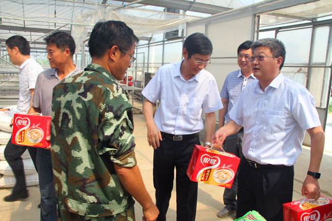 7月20日上午,集團副總經理張其海、總會計師匡友本來我公司大新農場、生態種養中心走訪慰問拼搏在農業種養一線的基層職工,為他們送上綠豆、白糖、牛奶及八寶粥等防暑降溫品。投資公司董事長、黨委書記胡傳法、黨委副書記、副總經理史祥平、副總經理周緒祥陪同慰問。