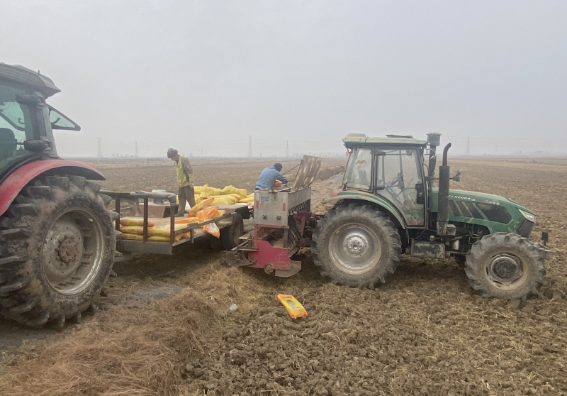 近日,大新農場積極組織小麥地開溝施肥播種作業。工作人員在農場的小麥種植區忙著翻犁、整土、施肥,有序推進小麥種植工作。(王璐)