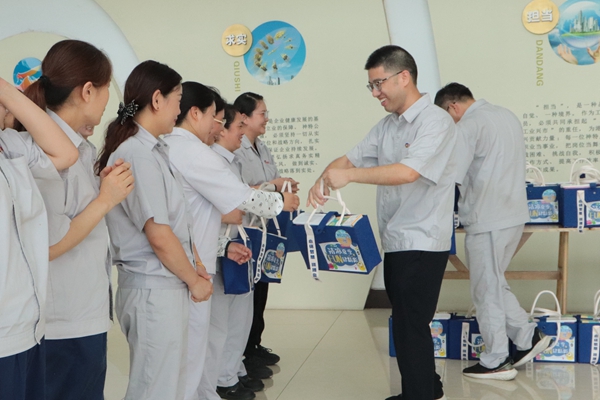 時值酷夏,為確保員工身心健康,營造安全、舒適的工作環境,82午,公司黨支部書記、董事長、總經理嚴成代表公司開展夏季送清涼活動,為全體職工送上組織的關懷和一份清涼大禮包,給炎熱的夏季帶來一縷清風,進一步激發了職工的工作熱情。(神特宣)
