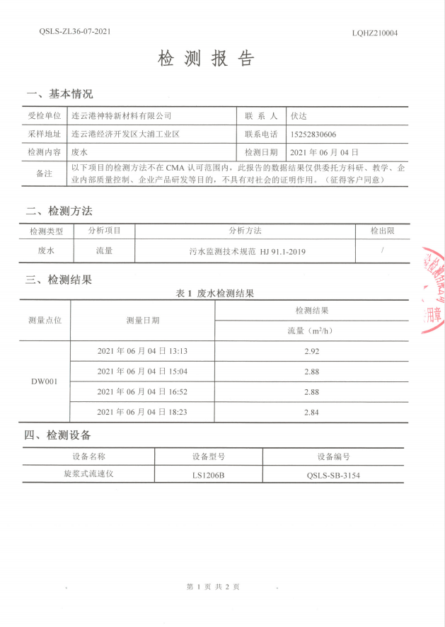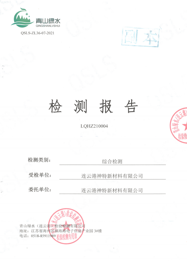 神特公司檢測報(bào)告公示