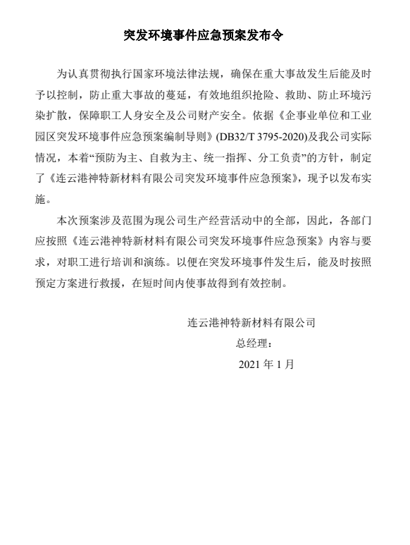 神特公司突發環境事件應急預案