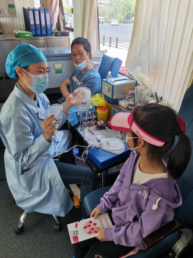 我的女兒很好奇,左瞅瞅右看看,我剛提醒她上面不能亂走,護士卻說,“沒關系,有什么不懂的可以問我?!?。于是,瞬間打開了她心中的“十萬個為什么”,她一會問問血液為什么是紅色的,一會問問這個設備是做什么的,后來問道小本子上那些字母干什么,為什么有的要畫一下?我們都給問蒙了,后來才想到她看過我十年前的獻血本,上面有血型勾選的;護士可能也是工作幾年的,不好意思的說,“我沒見過那樣的”。十幾分鐘的獻血很快就結束了,但是她們的對話仍在持續,直到又有人上來了,才依依不舍的和護士姐姐再見,跟著我們一起離開。