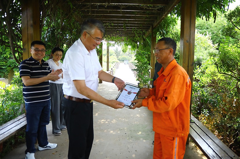 此次頒獎打破傳統(tǒng)集中表彰模式,將頒獎臺搬到生產(chǎn)建設(shè)最前沿,公司領(lǐng)導(dǎo)班子成員親自前往光伏安康驛站、創(chuàng)智綠園、大浦片區(qū)、云橋路施工現(xiàn)場、佟圩路施工現(xiàn)場、益豐園林園區(qū)6個一線點位,為獲獎員工頒發(fā)榮譽證書,并送上暖心祝福。當(dāng)公司領(lǐng)導(dǎo)將“星級員工”證書遞到員工手中時,獲獎?wù)唠y掩激動:“這份榮譽既是肯定,更是責(zé)任。我會繼續(xù)扎根基層,為臺北(華茂)貢獻全部力量!”