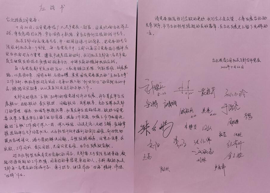 【給黨委回封信】機(jī)關(guān)全體黨員簽名應(yīng)戰(zhàn)書
