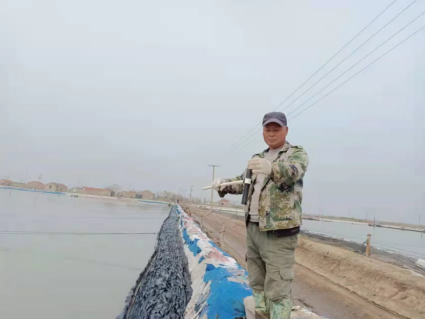 2021年,他服從公司生產(chǎn)機制的轉(zhuǎn)換,被安排到海濱三組18號灘作為領(lǐng)灘手,負責鈣液生產(chǎn)。為了不浪費每一毫米的蒸發(fā)量,每天天剛蒙蒙亮,就能看見他在縱橫阡陌的鹽田間穿梭,根據(jù)灘田結(jié)構(gòu)、針對不同季節(jié)確定走水路線,每天重復著調(diào)節(jié)鈣液、修整溝堰、修補塑布的工作,遇到大雨,他就不回家,守在灘上,及時把鈣液按照不同濃度引進鹵臺、鹵窖,雨水結(jié)束,第一時間把灘面淡水排掉,將鈣液回引進行晾曬。在生產(chǎn)面積僅有311畝的情況下,他每天要走3萬-4萬步,不僅對他自己的生產(chǎn)單元,對整片鈣液生產(chǎn)單元了如指掌,有多少閘門,多少電線桿,都了然于心。全年下來,生產(chǎn)鈣液28000方,在12個鈣液生產(chǎn)單元中名列前茅,領(lǐng)先超9000方,實至名歸的生產(chǎn)標兵。