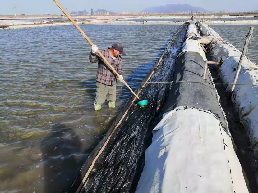 個頭不高,身材微胖,皮膚黝黑,走路健步如飛,平日話語不多,卻有著高超的制鹽產(chǎn)鈣能力,他就是海州灣公司海濱三組18號灘領(lǐng)灘手伏廣銀,一名普普通通的鹽場工人,工作34年來始終堅守一線,不論日出日落,也不論寒來暑往,總會看見一個忙忙碌碌的身影穿梭在鹽池灘頭,他用“一生只做一件事,要做就把它做到極致”的承諾和頑強拼搏、一絲不茍的人格魅力鑄就了自己的人生高度。
