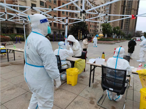 3月15日,公司緊急發通知,需要一名志愿者進駐同科志愿服務。與以往志愿服務性質不同的是,這次要24小時駐扎在同科,晚上也只能睡臨時搭建的帳篷。劉林,作為公司年齡最小的員工,卻在第一時間自告奮勇的報名。志愿服務的第一天,劉林先學習穿脫防護服、鞋套,然后協助工作人員采集信息、檢查健康碼、維持現場秩序、解答居民的各種問題。這樣的工作,從早晨一直持續到晚上。簡單吃完晚飯,緊接著是補錄綠碼人員。等所有工作結束,再進行周圍環境的全面消殺工作。防護服一穿就是一整天,每每脫下時,已是皮膚發皺、衣服濕透,面屏里泛滿水珠……已經連續工作2天的劉林說,“累,但我們必勝,堅持就是勝利!”