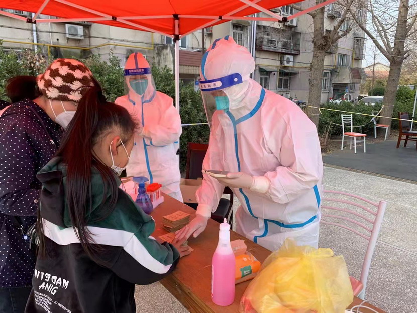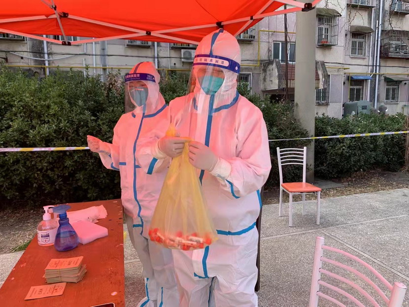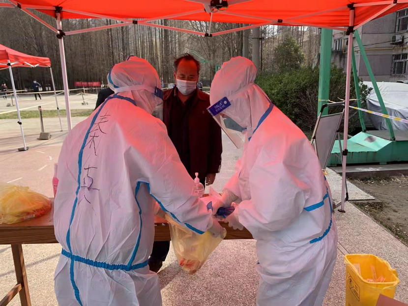 然而隨著疫情越發(fā)嚴重,小區(qū)核酸檢測員人手又緊張了起來,“我可以,這幾天我都學會了,最基本的我都會”秦英又是第一個舉手到最前線。這下她更忙了,每天凌晨三點起床做飯,五點社區(qū)報到,一直堅守到晚上八點。為了節(jié)省防護服,她一般都要等到中午2點多鐘才休息吃飯,這股毅力讓社區(qū)、街道領導看在眼里,服在心上,連一直牢騷怪話的幾個群眾也為她由衷地豎起大拇指。