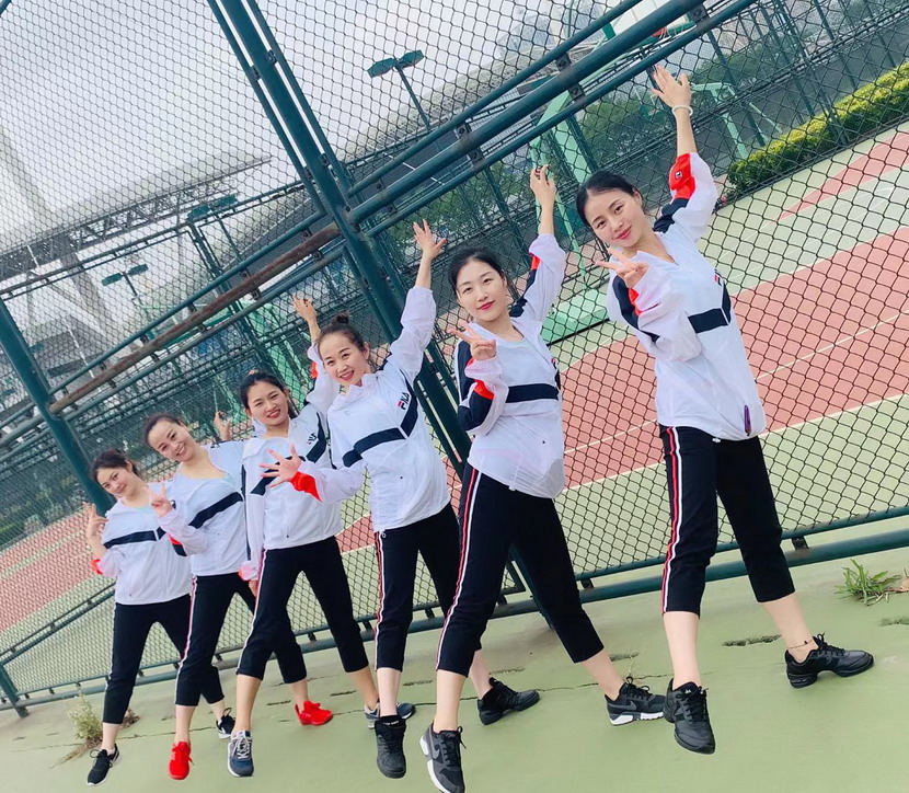 ▲ 平日里帶領“工投舞蹈隊”訓練的秦英(右三)