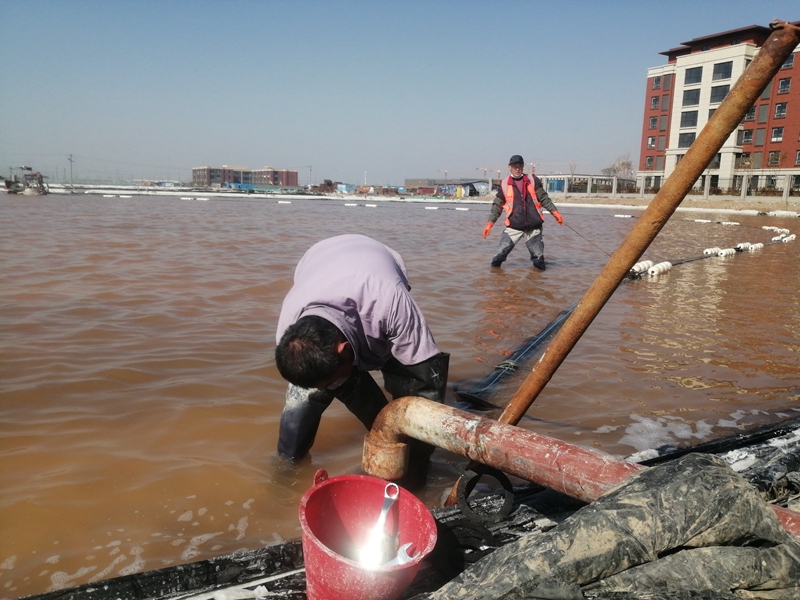 “管頭螺絲擰緊沒有?觸電保安器試跳過了嗎?先開機試一試管道漏不漏”。在扒鹽現(xiàn)場,扒鹽人員對開機前準備工作再一次檢查確認。隨著陣陣鞭炮聲的響起,海州灣公司“春扒”正式開啟。