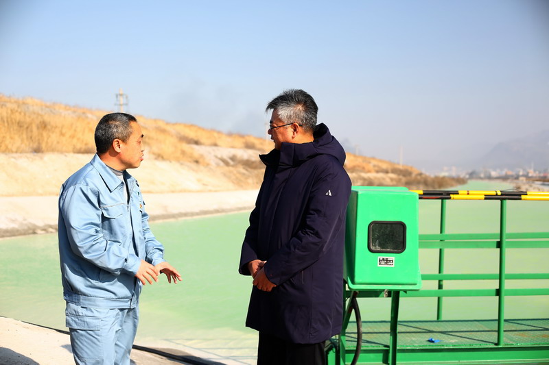 針對(duì)鈣液原料水環(huán)保參數(shù)超標(biāo)等問題,董事長(zhǎng)王德志一行現(xiàn)場(chǎng)勘察堿業(yè)公司氨堿上清液,堿業(yè)公司渣場(chǎng)管理處主任盧全才等領(lǐng)導(dǎo)詳細(xì)介紹近期堿廠的環(huán)保整改措施,首先是進(jìn)一步做好酸堿平衡,確保原料水PH值堿度指標(biāo)不超標(biāo),其次是降低氨氮濃度,確保不超標(biāo)。在此基礎(chǔ)上,堿業(yè)公司在氨堿上清液送水通道安裝水質(zhì)在線監(jiān)測(cè)設(shè)備,確保及時(shí)發(fā)現(xiàn)異常,做到第一時(shí)間處置。