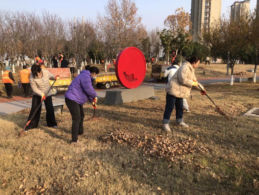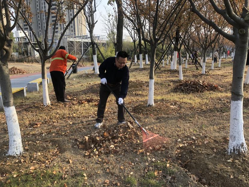 活動現(xiàn)場,黨員同志、積極分子分為兩撥,分別從創(chuàng)智綠園北門和東門對園內(nèi)雜草落葉進行清除。在戴好手套,做好防護、防凍措施的同時,紛紛拿著掃帚、耙子等工具,統(tǒng)籌安排、分工勞作,齊心協(xié)力,有的用掃帚掃落葉、有的用袋子裝落葉、有的用耙子摟落葉……大家忙得熱火朝天,充分發(fā)揚不怕臟、不怕苦、不怕累的黨員先鋒本色,創(chuàng)智綠園內(nèi)處處是同志們清理雜草落葉的身影,構(gòu)成了一道亮麗的風(fēng)景線,經(jīng)過一個多小時的辛勤勞動,兩撥隊伍順利“會師”,沿途雜草落葉被清理得干干凈凈,公園環(huán)境也得到明顯改善。
