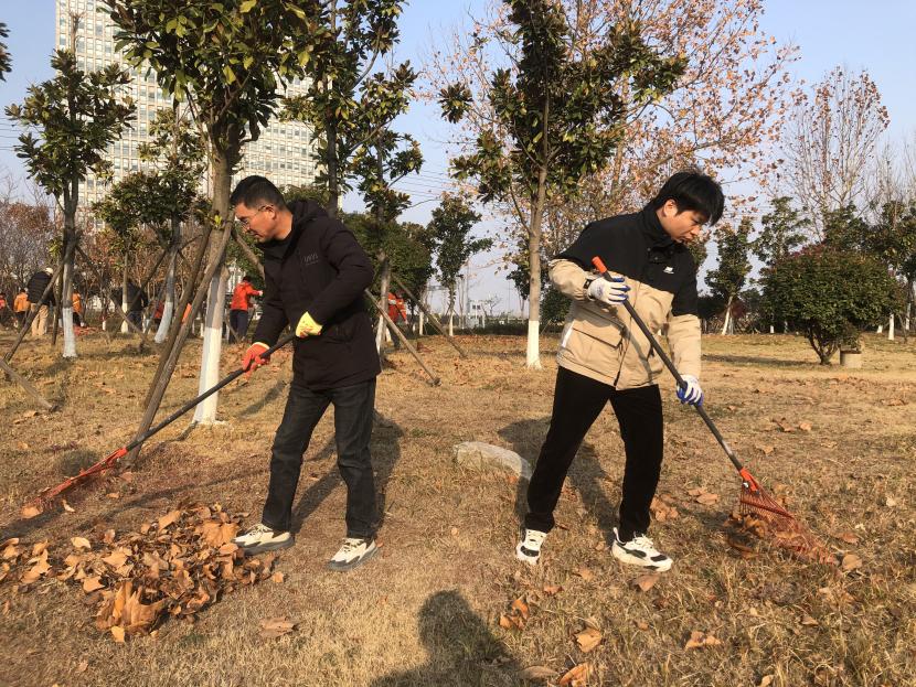 隨著冷空氣的悄然侵襲,天氣變得既寒冷又干燥,樹葉落滿了地面,不僅給居民的出行帶來不便,還影響了轄區(qū)環(huán)境的整潔。為進一步踐行勞動精神,更好地發(fā)揮臺北投資公司機關(guān)黨支部戰(zhàn)斗堡壘作用和黨員先鋒模范作用,切實保障綠化分公司創(chuàng)智綠園“冬準(zhǔn)”工作。12月6日下午,機關(guān)黨支部聯(lián)合綠化分公司黨支部在創(chuàng)智綠園開展“踐行勞動精神,集中清除落葉”突擊勞動活動。