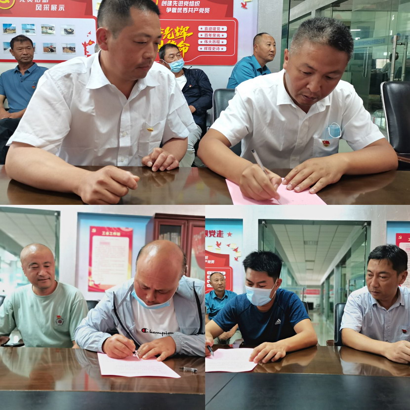 ? ? 會后,在書記工作室舉行了黨員“1+1”結對幫扶活動儀式。“名將”劉天義、“闖將”伏廣銀、“虎將”霍正鋼分別與一線鹽工朱文健、孫希學以及安全員紀鵬簽訂結對幫扶協議,霍正鋼作為幫扶者代表作黨員“1+1”共同進步宣言,他表示將通過不定期的交流,發現被幫扶員工思想和工作中存在的問題和不足,充分發揮優秀黨員自身的模范帶頭作用 ,進一步激發被幫扶員工的工作熱情,真正提高工作質量和生產技能,全面促進公司各項工作更好、更快的發展。被幫扶員工代表紀鵬也立即積極回應,表示平時要做到腦勤、口勤、腿勤、手勤,虛心請教,善于從日常的事物和現象中發現問題,積極主動承擔任務,多思考、多實踐,盡快提高業務水平,力爭早日成為獨當一面的骨干能手。