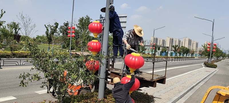 每年到5月底,溫度升高,天氣熱起來了,花果山大道兩側掛滿的燈籠就到了拆除的時候,翔立分公司承接南至三中隊,北到242省道之間的花果山大道路段及黃海大道兩側共800只LED發光燈籠拆卸工程。這項工程量大,工期短,翔立分公司機械班全員出動,加班加點,克服困難,實現拆除工作安全、快速推進。施工現場,大家分工明確、配合默契,利用小型叉車進行輔助拆除作業,五分鐘不用一個燈籠就拆除完成。負責拆除的人員完成拆除部分,負責運輸的同志要將燈籠還原以及運送回收。對于拆下來的燈籠必須及時進行運送和回收保存,確保來年安裝的時候重復利用。