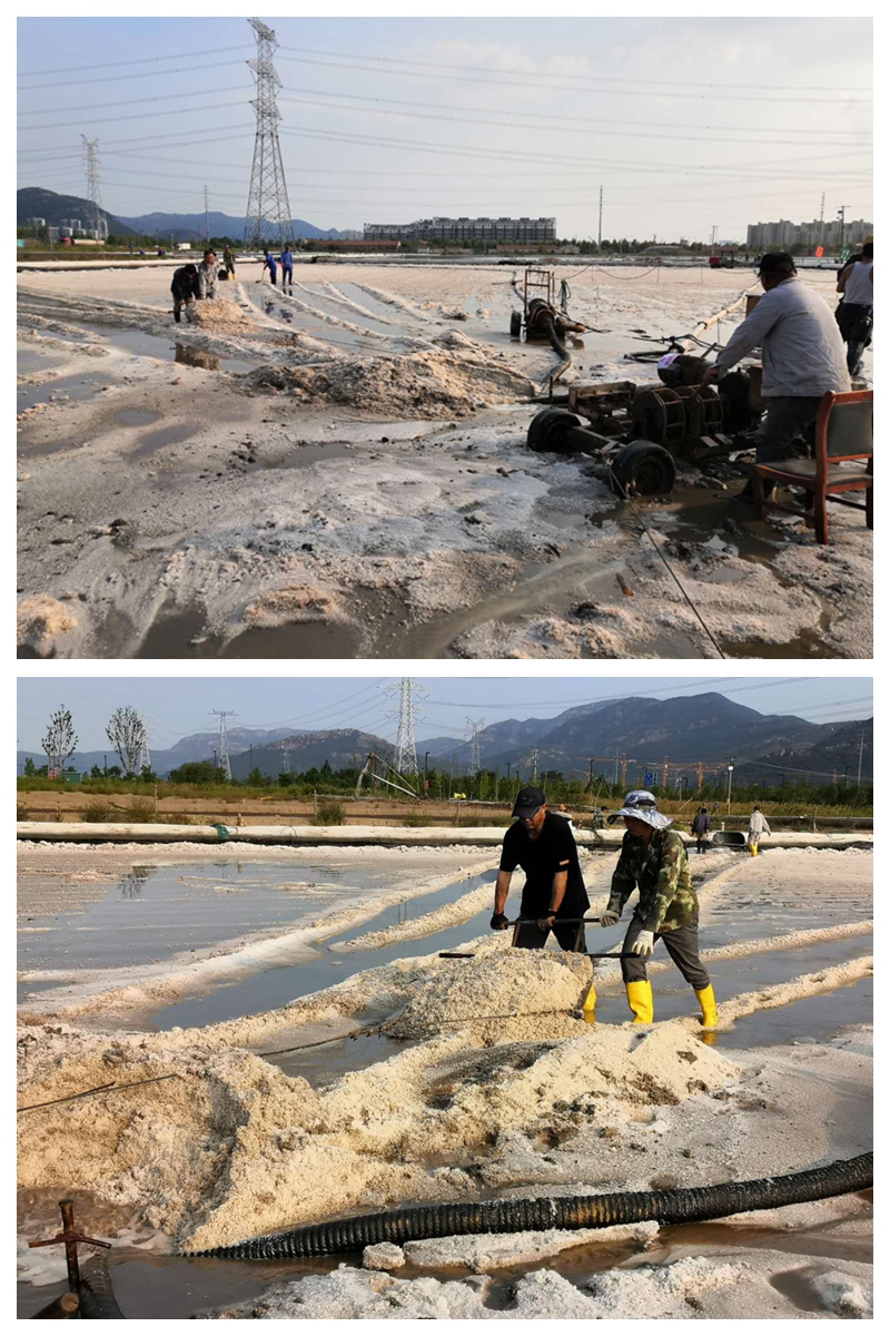 “大架在向后移動(dòng)4到5公分,鹽鎊、鹵鎊與管頭螺絲擰緊沒有?觸電保安器試跳一下”…….扒鹽現(xiàn)場忙碌而有序,扒鹽人員對開機(jī)前準(zhǔn)備工作再一次檢查確認(rèn)。15:56分鞭炮齊鳴、禮花滿天,“秋扒”正式開啟。本次扒鹽采用人工與機(jī)械相結(jié)合的工作方法,根據(jù)鹽層的厚薄程度決定扒鹽的方式。此次扒鹽生產(chǎn)周期長、工作量大,工區(qū)認(rèn)真組織、精心安排,制定了詳細(xì)、”人性化”的管理人員跟班督查值班表(男同志夜班女同志白班)。要求跟班人員,務(wù)必將“安全、質(zhì)量”兩大主題貫穿整個(gè)秋扒工作的各環(huán)節(jié),每天深入扒鹽點(diǎn)開展全面綜合性的定點(diǎn)檢查,重點(diǎn)圍繞“工藝執(zhí)行、安全防范、護(hù)具穿戴”等,職工容易產(chǎn)生思想麻痹的細(xì)節(jié)工作,嚴(yán)明紀(jì)律,杜絕違章作業(yè)。搶時(shí)間爭速度,確保“秋扒”高效有序完成。