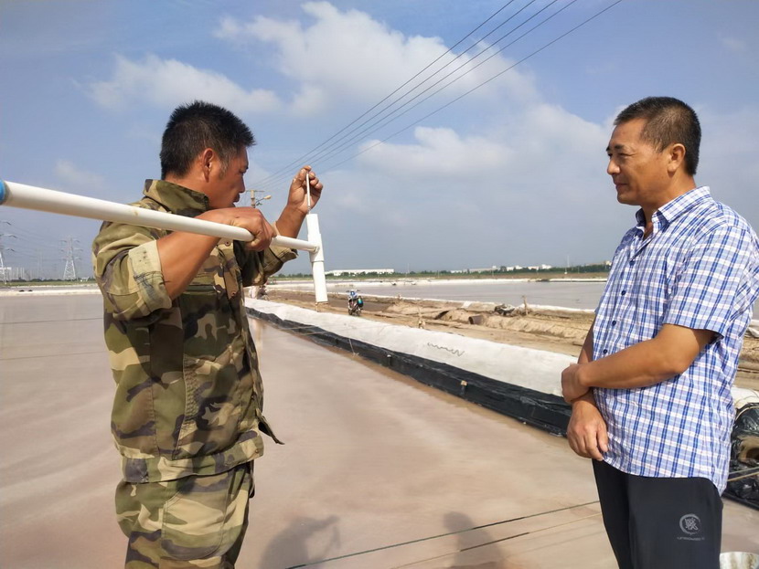 上圖為礦鹽生產(chǎn)顧問(wèn)王緒前在現(xiàn)場(chǎng)指導(dǎo)測(cè)量鹵水波美度及相關(guān)數(shù)據(jù)