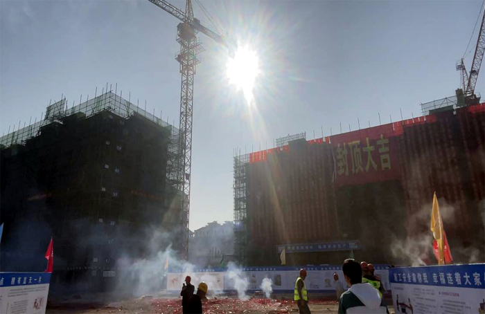 項目施工現場,彩旗迎風飄揚,六門禮炮齊鳴,禮花漫天飛舞,幸福家園改造工程舉行封頂儀式。徐圩投資公司副總經理、建設單位項目負責人季東生向工程項目部表達了祝賀,肯定各協作單位及相關人員的傾力支持。并強調施工單位要總結經驗,進一步加強現場質量和安全管理,有序推進工程進程。各參建單位表示,將嚴格按照設計方案,集中時間、精力、人力。全力推進后續工程建設,力爭項目早日竣工交付使用,為業主打造高品質,高舒適度的住宅小區。(蔣超)
