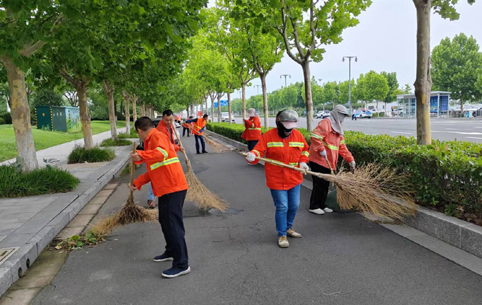 集中奉獻(xiàn)“熱火朝天”。學(xué)習(xí)結(jié)束后,保潔、瑞南支部近20余名黨員,匯集于徐圩新區(qū)核心區(qū)域上海路、南京路輔道現(xiàn)場(chǎng),開展人工清掃道路積土,樹葉集中奉獻(xiàn)勞動(dòng)。勞動(dòng)現(xiàn)場(chǎng),大家無(wú)懼七月高溫炎熱天氣,揮動(dòng)手中大掃把,迅速清掃落葉,雨水沖涮下來(lái)的綠化帶中泥土長(zhǎng)達(dá)2000多米長(zhǎng),打包轉(zhuǎn)運(yùn)各類垃圾30多包,看著整潔黑色路面呈現(xiàn)眼前,隊(duì)員們情不自禁露出開心的笑容。(楊波 金知青)