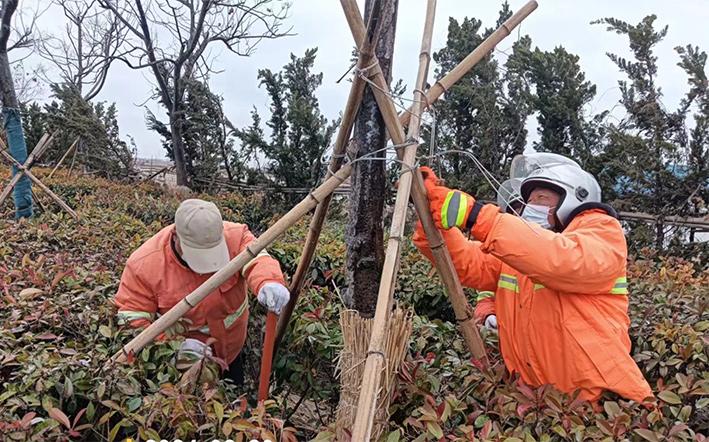 降雪發(fā)生以來,在清理路面積雪保障群眾安全通行的基礎(chǔ)上,該公司迅速組織班組開展園林苗木積雪冰凍清除工作,重點對黑松、雪松、龍柏、球類等苗木積雪進(jìn)行清理,及時為樹木“減壓”,避免積雪壓彎或壓斷樹枝,及時消除安全隱患,保護(hù)轄區(qū)內(nèi)綠化成果。截至目前,共計清除各類園林苗木積雪8600余株。(陳小東)