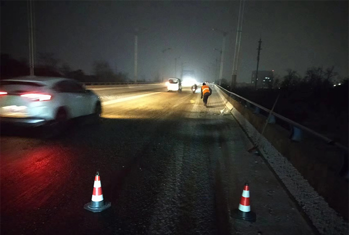 “下雪就是命令!”昨晚幾乎與降雪同步,板橋園區滿城“橘黃閃耀”。風雪中,瑞南人不畏嚴寒,堅守崗位,后勤保障加班加點,在連云園區燒香河大橋上,各班組人員協同作戰,有指揮、有鏟雪、有拋灑融雪劑,他們揮舞鐵鍬、揮動掃把,全速進行掃雪除冰工作。截止19日凌晨兩點,燒香河大橋、程圩高架橋,上下引坡等交通要道區域積雪已基本清除完畢,其他路段正在有序清理。 (金知青)